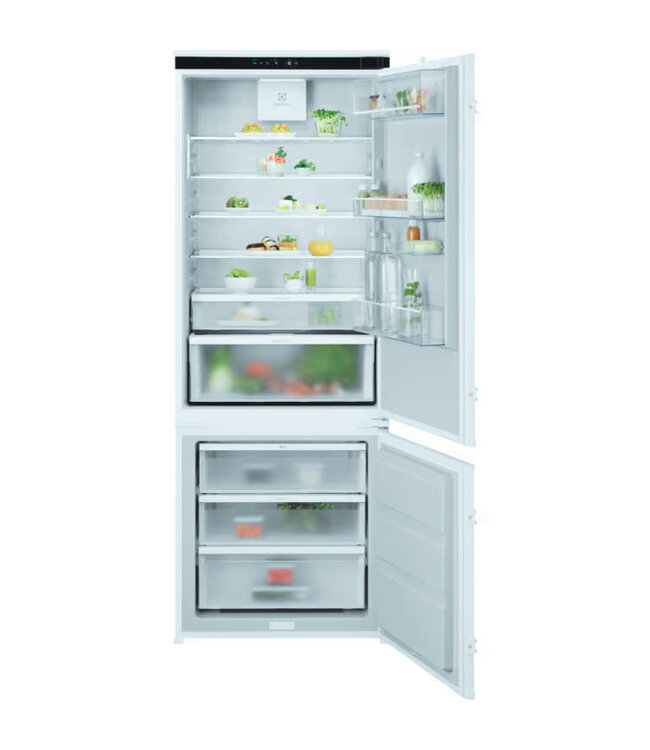 De Electrolux 700 serie GreenZone inbouw koel-vriescombinatie ENG7TE75S biedt een innovatieve oplossing voor het bewaren van uw verse producten. Met een speciale GreenZone lade zorgt deze koelkast ervoor dat de luchtvochtigheid op een stabiel niveau blijft, door overtollige vochtigheid te beheersen. Dit betekent dat tot 95% van de vitamines in uw groenten en fruit behouden blijft, doordat de juiste luchtvochtigheid ervoor zorgt dat ze langer vers blijven. Daarnaast beschikt de koel-vriescombinatie over moderne technologieën voor optimale prestaties en energiezuinigheid.