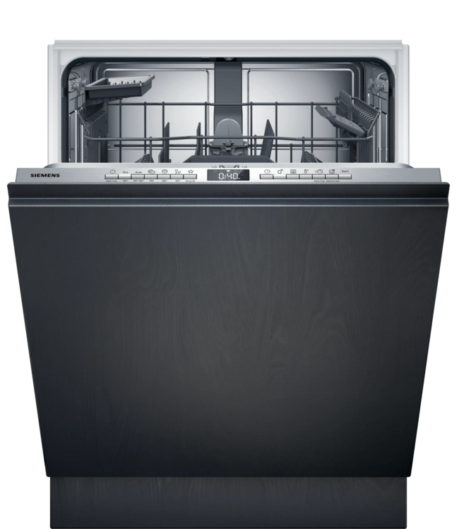 Met de Siemens iQ300 SX63HX17BE kiest u voor een stille, efficiënte en slimme volledig integreerbare vaatwasser met flexibele indeling en extra snelheid wanneer u die nodig heeft.